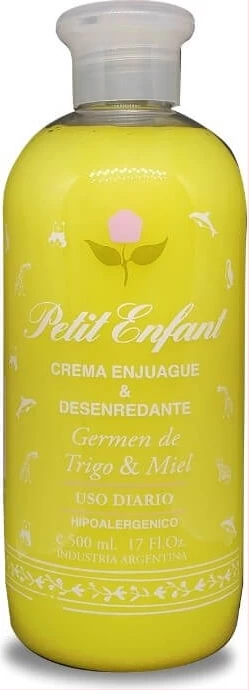 Esta ultra suave Crema Enjuague y Desenredante Petit Enfant, dejará el cabello acondicionado, suave y brillante. El germen de Trigo y la Miel, nutren y enriquecen la fibra capilar dándole volumen y brillo.