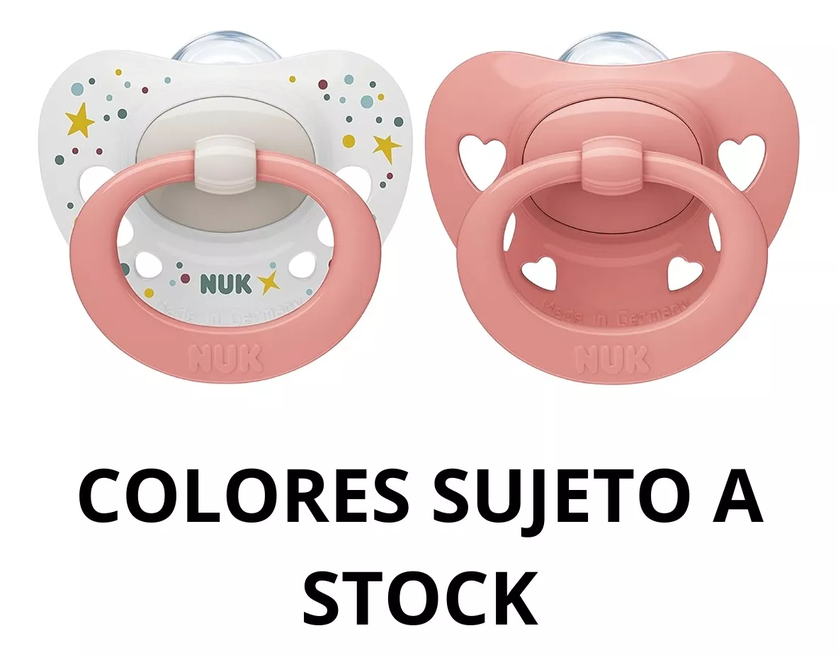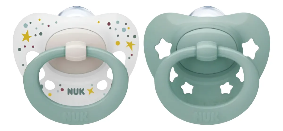2 CHUPETE SIGNATURE NUK con diseño delicado y colores tenues ideal para tu bebé recién nacido hasta los 6 meses. (Diseños sujetos a stock disponible, respetando la opción de color seleccionada)