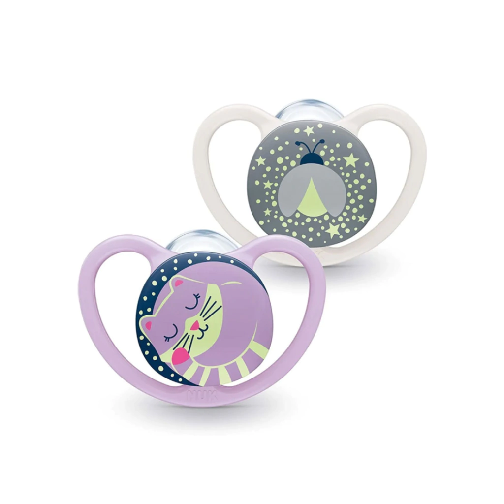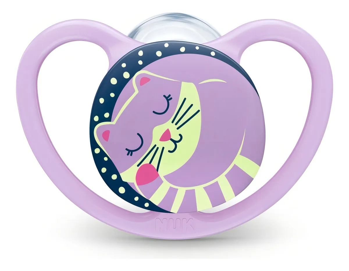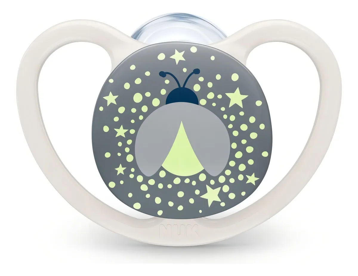 Los chupetes NUK Space Luminosos ayudan a los bebés a encontrar el camino hacia la Tierra de los Sueños. Gracias a un material luminoso seguro para bebés, los chupetes irradian un suave brillo en la oscuridad y se pueden encontrar rápidamente incluso de noche.