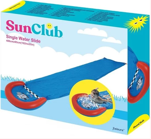 El tobogán acuático Sun Club 51234 es la solución perfecta para niños activos que aman los juegos acuáticos. El fácil montaje permite un rápido despliegue en el jardín. Cuando se conecta a una manguera de jardín, el rociador de agua proporciona un deslizamiento excelente. La puerta de entrada integrada en forma de elefante con chorros de agua fomenta además el juego. Las dimensiones del tobogán son 488 x 90 cm y su peso neto es de 1.191 kg. La marca Sun Club, conocida por sus productos de alta calidad para la recreación acuática, garantiza una diversión duradera y segura. Instale el tobogán en un área previamente despejada y disfrute de la diversión del verano.