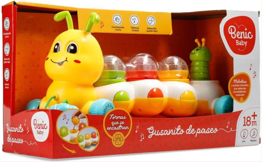 Estimula a los pequeños con este divertido gusanito de arrastre, tiene linda melodía y luces para entretenerlo, juegos de encastre para estimular su motricidad y destreza. ¡le encantara!