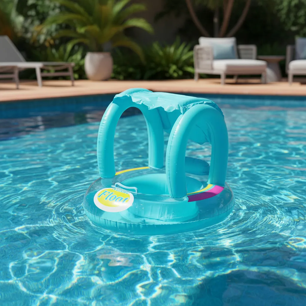 SALVAVIDAS INFANTIL, CON FORMA DE BOTE CON TOLDO 70CM