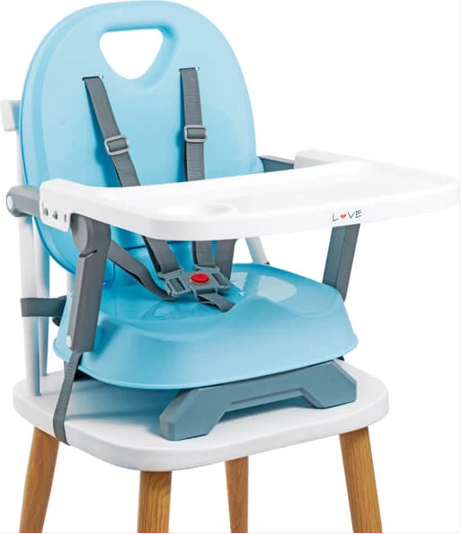Silla de comer 3 en 1 LOVE • Cinturón de 3 puntos • 3 Posiciones: Silla alta, silla baja y se adapta tipo booster en la silla.
