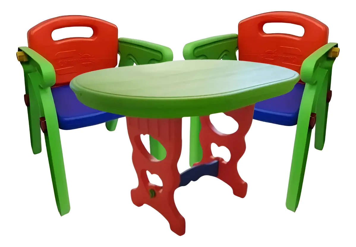 Fabricadas en plástico resistente, estas piezas son fáciles de limpiar, ideal para aquellos momentos de juego en los que la creatividad puede volverse un poco descontrolada. Con dimensiones adecuadas para la comodidad de los niños, las sillas miden 36 cm de ancho y soportan hasta 30 kg, mientras que la mesa tiene un tamaño perfecto de 60 cm de largo y un peso máximo soportado de 20 kg. La altura de la mesa y las sillas está pensada para facilitar el acceso y la interacción, haciendo que cada actividad sea más accesible.