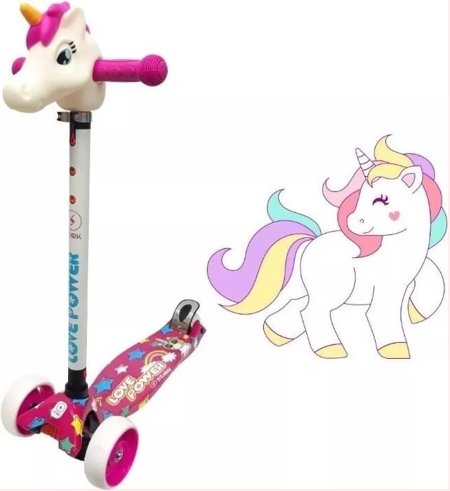 – MANUBRIO REGULABLE y PLEGABLE con cabeza de unicornio extraible