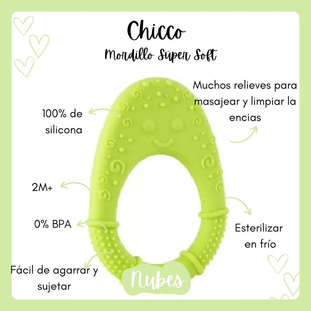 El Mordillo Silicone Super Soft Chicco 2m+ es el aliado perfecto para tu bebé en su etapa de dentición. Este mordillo está fabricado en silicona super suave, ideal para aliviar las molestias de las encías sensibles de tu pequeño. Su tamaño y forma son perfectos para las manitas de los bebés a partir de los 2 meses, permitiéndoles explorar y morder de manera segura. Además, es libre de BPA, lo que garantiza un producto seguro y de alta calidad para tu bebé. Este mordillo es una pieza única por envase. Con Chicco, la comodidad y el bienestar de tu bebé están en buenas manos.
