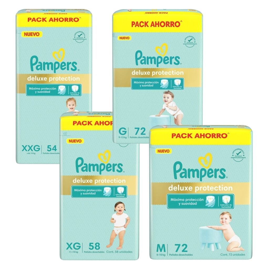 Los pañales Deluxe Protection de Pampers, protegen la delicada piel de tu bebé suave como el algodón y ultra respirable. Además cuenta con canales de Aire para una piel aireada y seca y con una exclusiva loción hipoalergénica que ayuda a prevenir irritaciones.