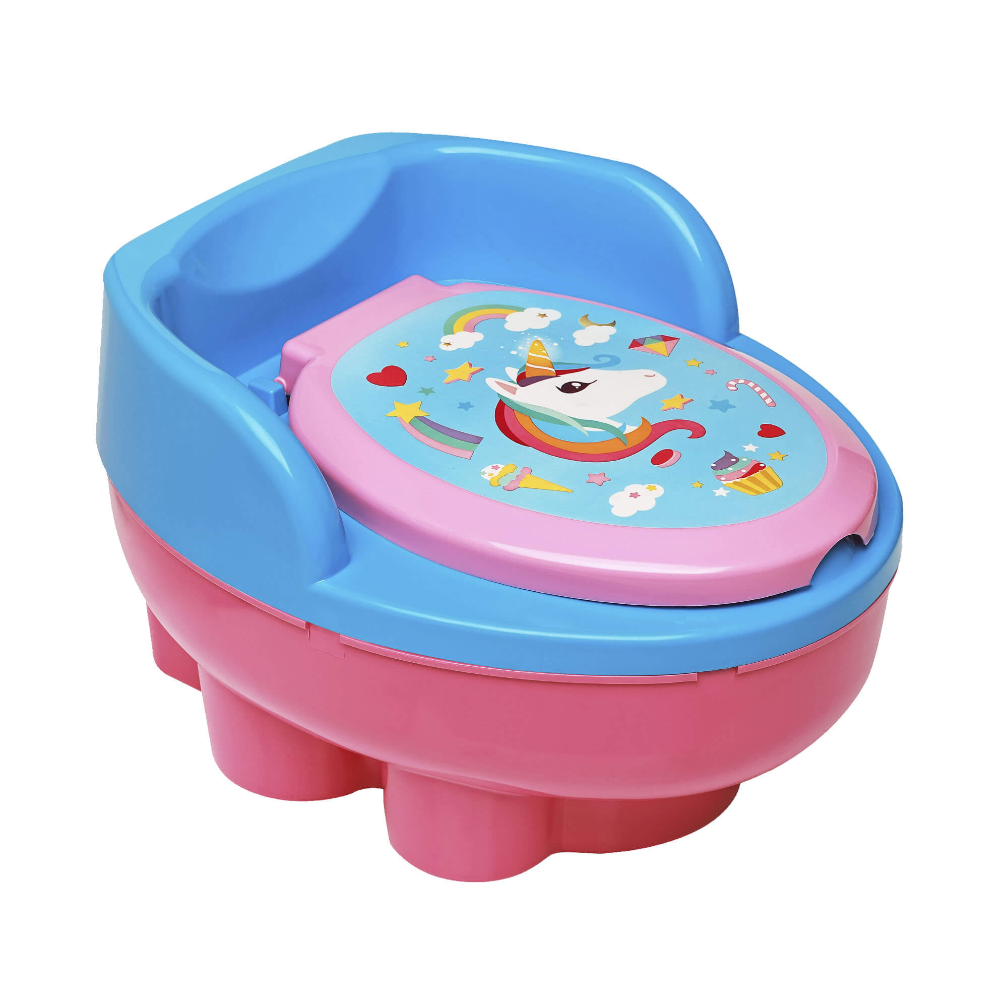 Se separa la tapa y puede usarse como reductor de inodoro mientras que la base puede utilizarse como escalon step para llegar a la bacha.