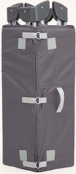Viajar con esta cuna y almacenarla es sencillo, gracias a que se pliega de forma compacta, práctica y en un instante.