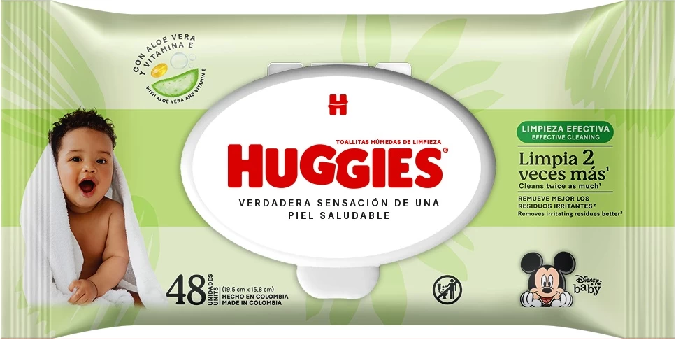 Toallitas Húmedas Huggies® Limpieza Efectiva *Cuidado natural con Eco-Fibras. Fibras de origen natural contenidas en el producto para una suavidad como el algodón*Toallitas húmedas con control de olor y triple hoja de absorción*Hipoalergénicas, Sin parabenos y Sin Alcohol*Máxima limpian desde la primera pasada*Con menos plástico que otros productos del mercado.*Aprovecha tus toallitas húmedas para otros usos:*Antes y después de comer*Después de jugar con animales o en la calle*Al estornudar, o al salir del baño